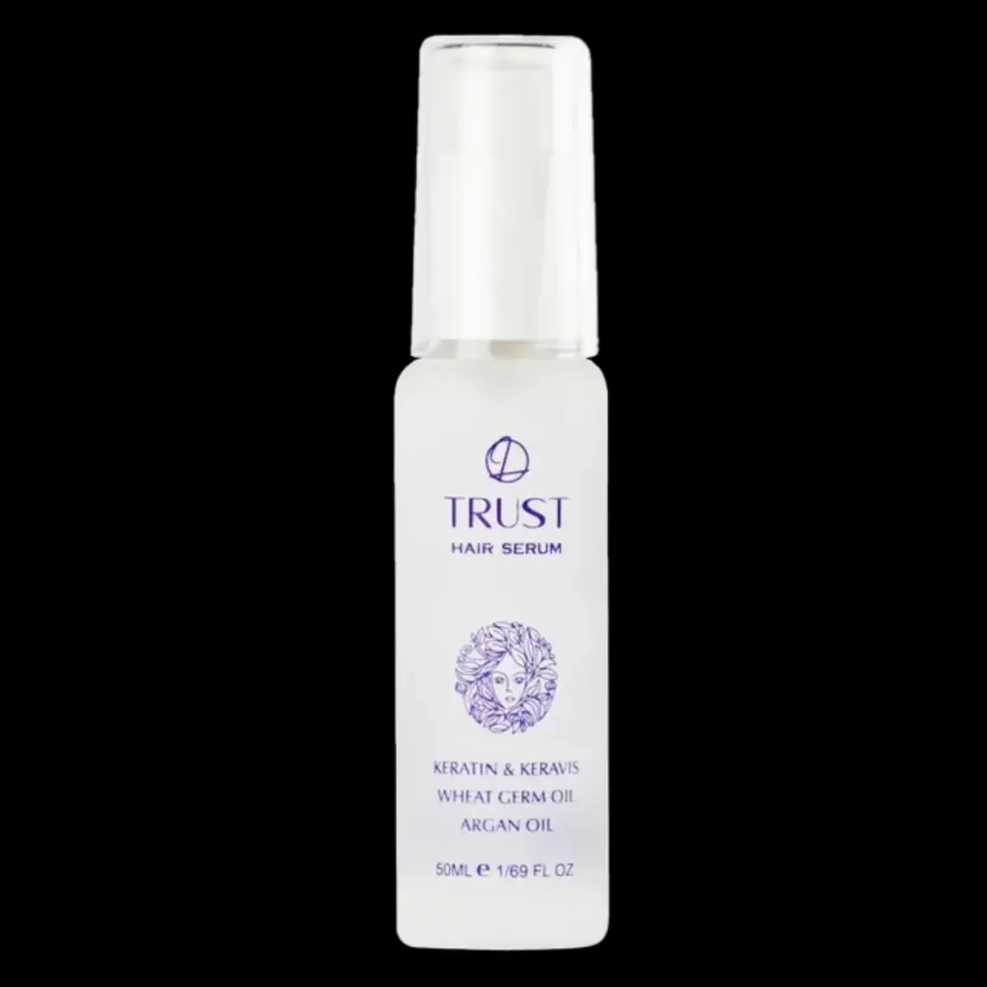 روتین کامل برای موهای درخشان. این سرم یه نجاتدهندهست. چند قطره از سرم کراتین و آرگان تراست کافیست تا تارهای مو رو تقویت و نرم کنه، جلوی موخوره و وز شدن رو بگیره، موها رو از حرارت سشوار و اتو در امان نگه داره، رطوبت و شفافیت طبیعی رو برگردونه و موهات رو براق و خوشحالت نشون بده.