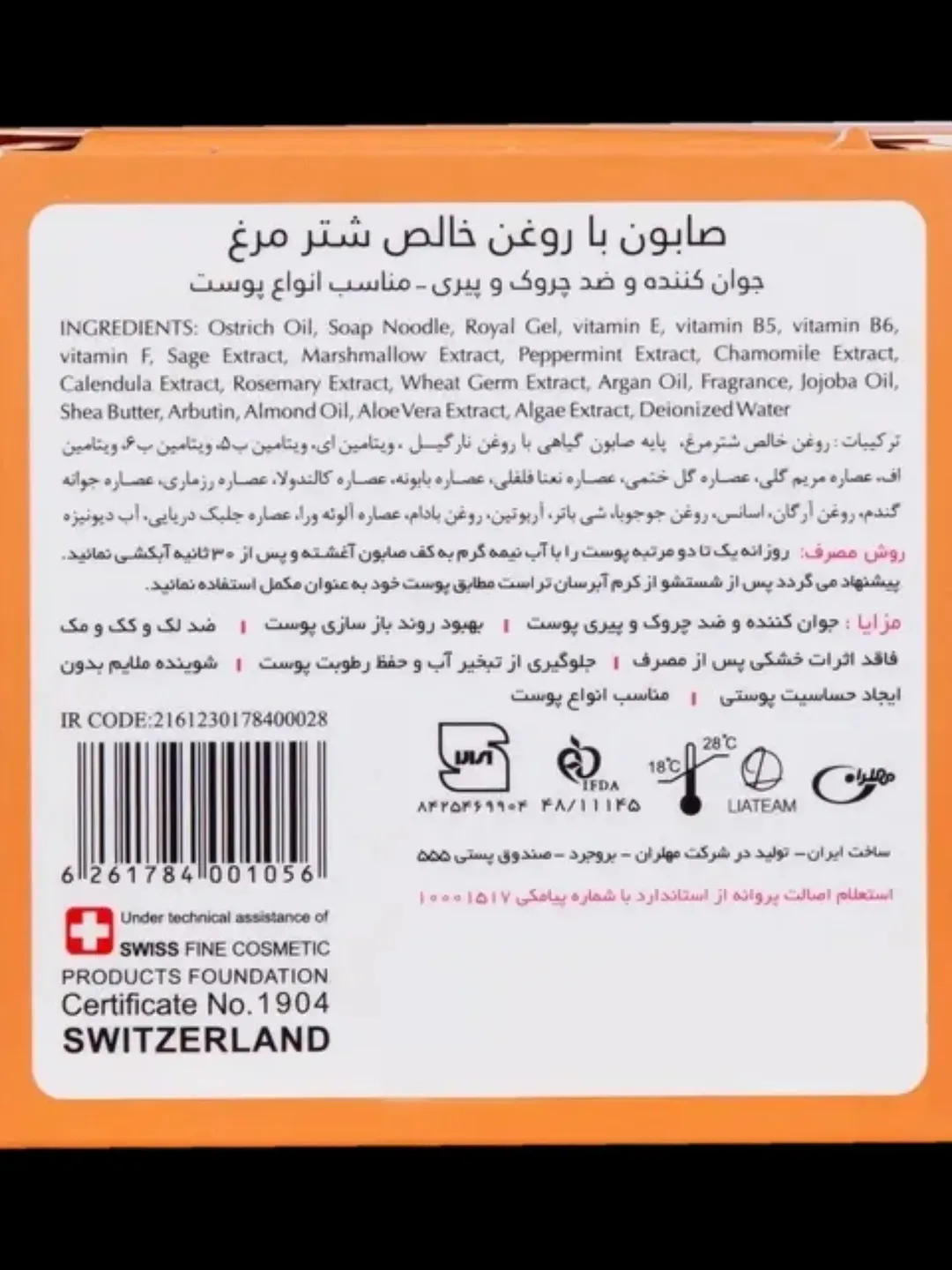بازسازی، روشنکنندگی و جوانی در هر شستشو! قدرت ترمیمکنندگی روغن شترمرغ، حالا توی یه صابون لوکس و مغذی! هر بار شستشو یعنی یه قدم به سمت پوست روشنتر، نرمتر و جوانتر جذب عمیق، آبرسانی واقعی و بازسازی سلولی که لکها رو کم میکنه و شادابی رو برمیگردونه بده تا پوستت دوباره مثل روزای اولش بدرخشه