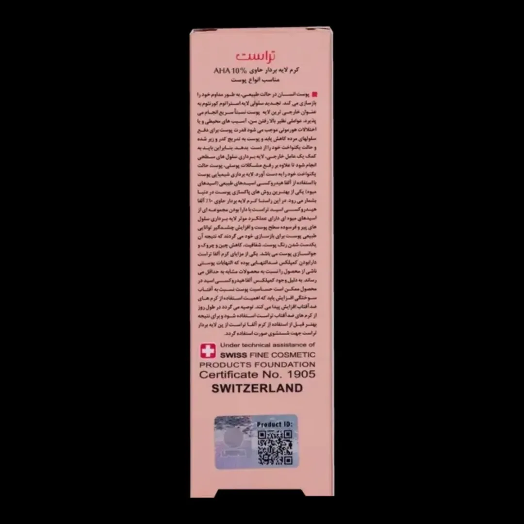 کرم لایهبردار حاوی 10% AHA تراست با ترکیبی هوشمند از گلایکولیک اسید، لاکتیک اسید، تارتاریک اسید و سیتریک اسید، پوست رو لایهبرداری ملایم میکنه و سلولهای جدید و زنده رو جایگزین سلولهای مرده میسازه ویژگیهای طلایی: بازسازی عمیق پوست و رفع تیرگیها کاهش خطوط ریز و چینوچروک روشنکننده و یکنواختکننده رنگ پوست افزایش نرمی و لطافت پوست با آبرسانی طبیعی تحریک کلاژنسازی و جوانسازی واقعی با هر بار استفاده.