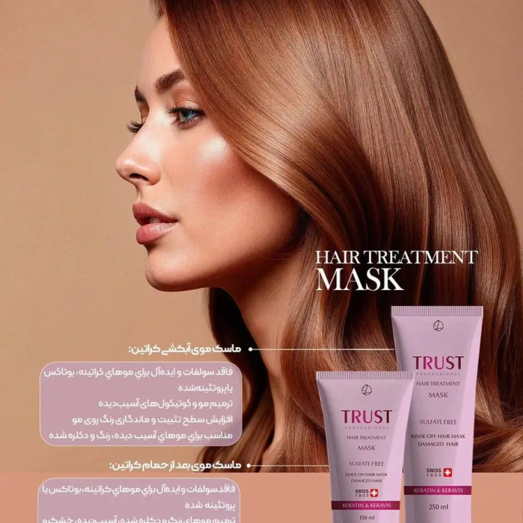 ماسک موی بعد از حمام کراتین تراست – احیای موهای خسته و آسیبدیده. این ماسک با ترکیب بینظیر کراتین، جوانه گندم، آلوئهورا و ویتامین E، مثل یه درمان حرفهای توی سالن زیبایی عمل میکنه. ویژگیها: ترمیم و بازسازی موهای آسیبدیده، تغذیه و تقویت مو از ریشه تا نوک، آبرسانی عمیق بدون ایجاد چربی، افزایش شفافیت و درخشش مو و محافظت در برابر حرارت و آلودگی محیطی.